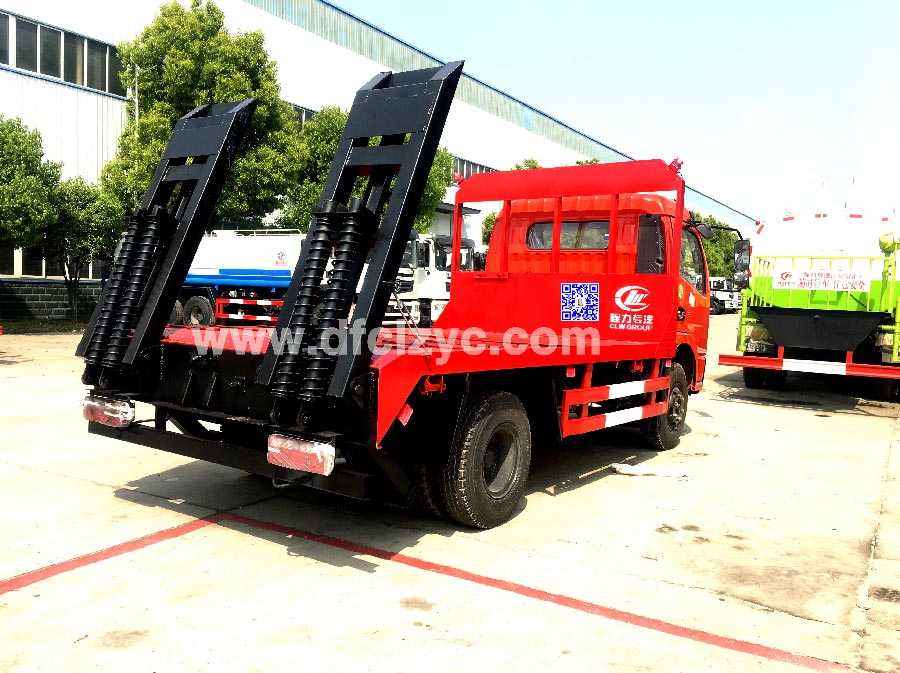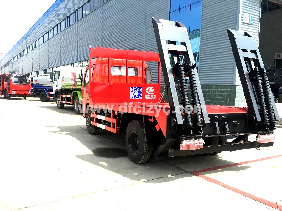 東風(fēng)福瑞卡平板運輸車車架低,承載能力大,使用壽命長。前輪可轉(zhuǎn)向,轉(zhuǎn)角達90°,在施工道路不平的情況下,能保持所有輪胎同時著地,保證車架和輪胎受力均衡合理,確保所載設(shè)備的安全。車輛裝有腳剎系統(tǒng)和手剎制動。車輛尾部安裝專用機械式半自動爬梯,履帶式工程設(shè)備可以自行上下平臺(無需其他任何起吊設(shè)備及輔助工具)直接與主車掛鉤連接。