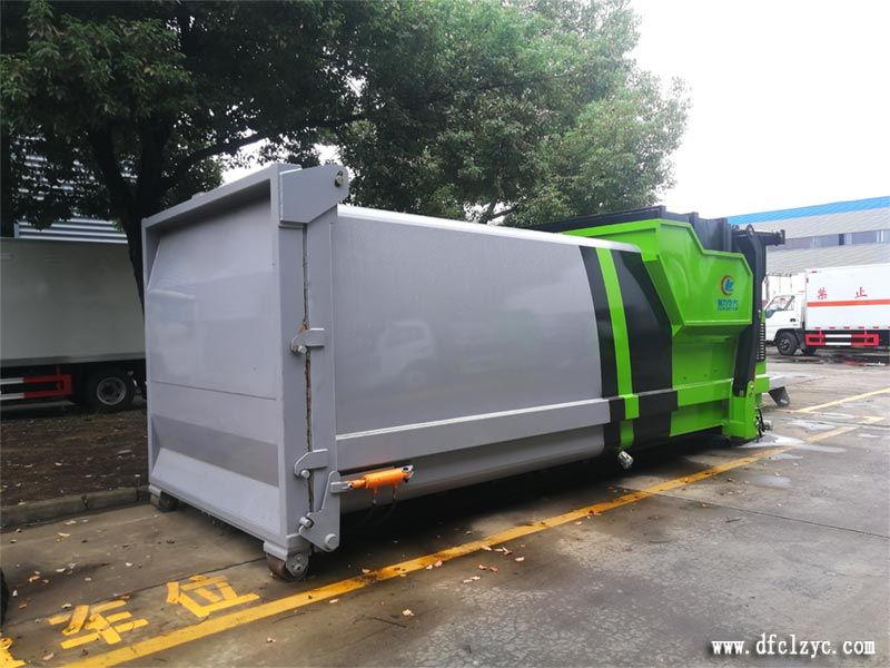 湖北程力移動壓縮式垃圾箱由箱體總成、液壓系統(tǒng)、電氣系統(tǒng)等組成,其中箱體總成由填塞器、箱體、后門、后門鎖緊機(jī)構(gòu)、壓縮箱、翻料斗等組成。填塞器,設(shè)在箱體前部,是壓裝垃圾的主要裝置,主要用于將垃圾推入箱體內(nèi)并壓縮;后門鎖緊機(jī)構(gòu)由油缸、鎖鉤等組成,設(shè)在后門附近的箱體兩側(cè),通過油缸的伸縮,即可實現(xiàn)后門的開啟與鎖閉。