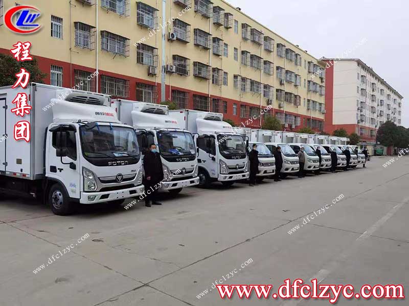 2021牛氣沖天,2020年剛剛過去,湖北程力集團銷售部接到了廣西老客戶張總的電話,要訂購一批冷藏車,因為快到年底了,各地的疫情也很緊張,張總說要趕緊生產(chǎn)然后送往廣西,經(jīng)過跟張總的溝通最終定下7臺藍牌福田祥菱M1冷藏車,和3臺黃牌奧鈴速運冷藏車。